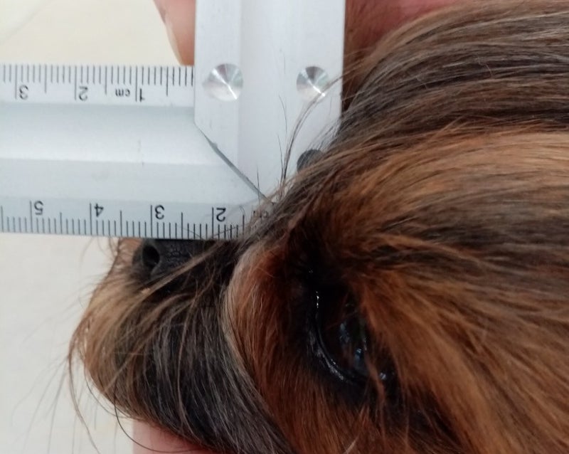 As you can see, measures the muzzle of Bella 3 cm. Her skull, measured as shown in the photo above, is 8,5 cm.